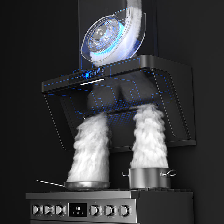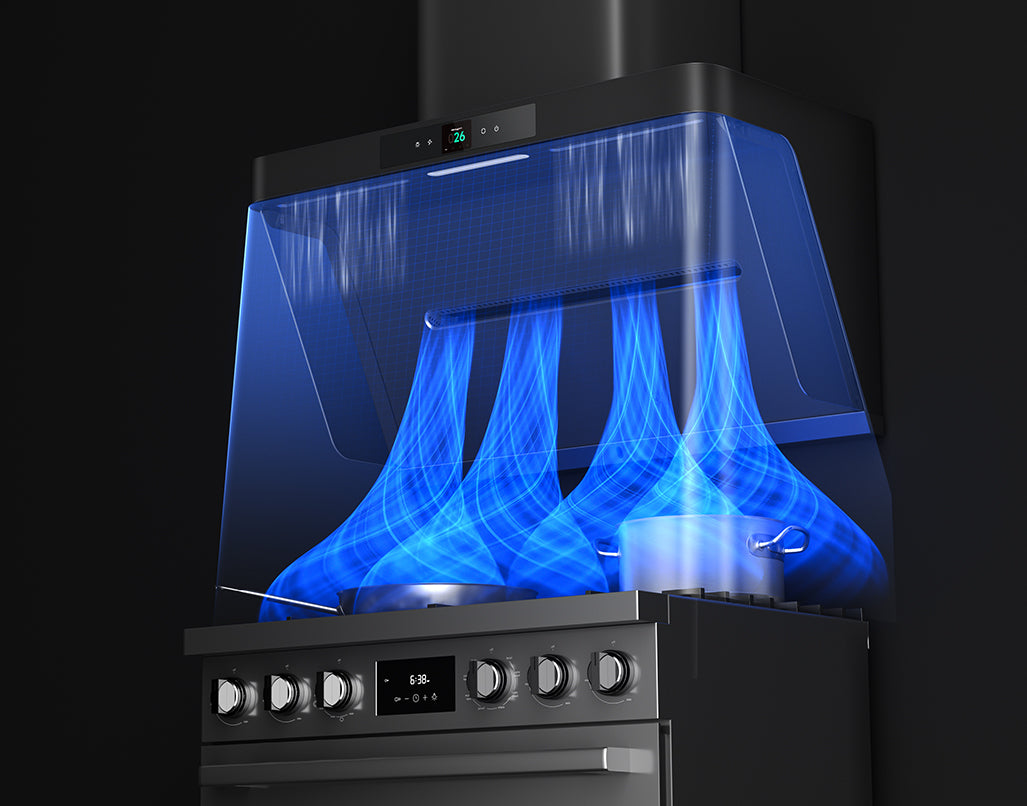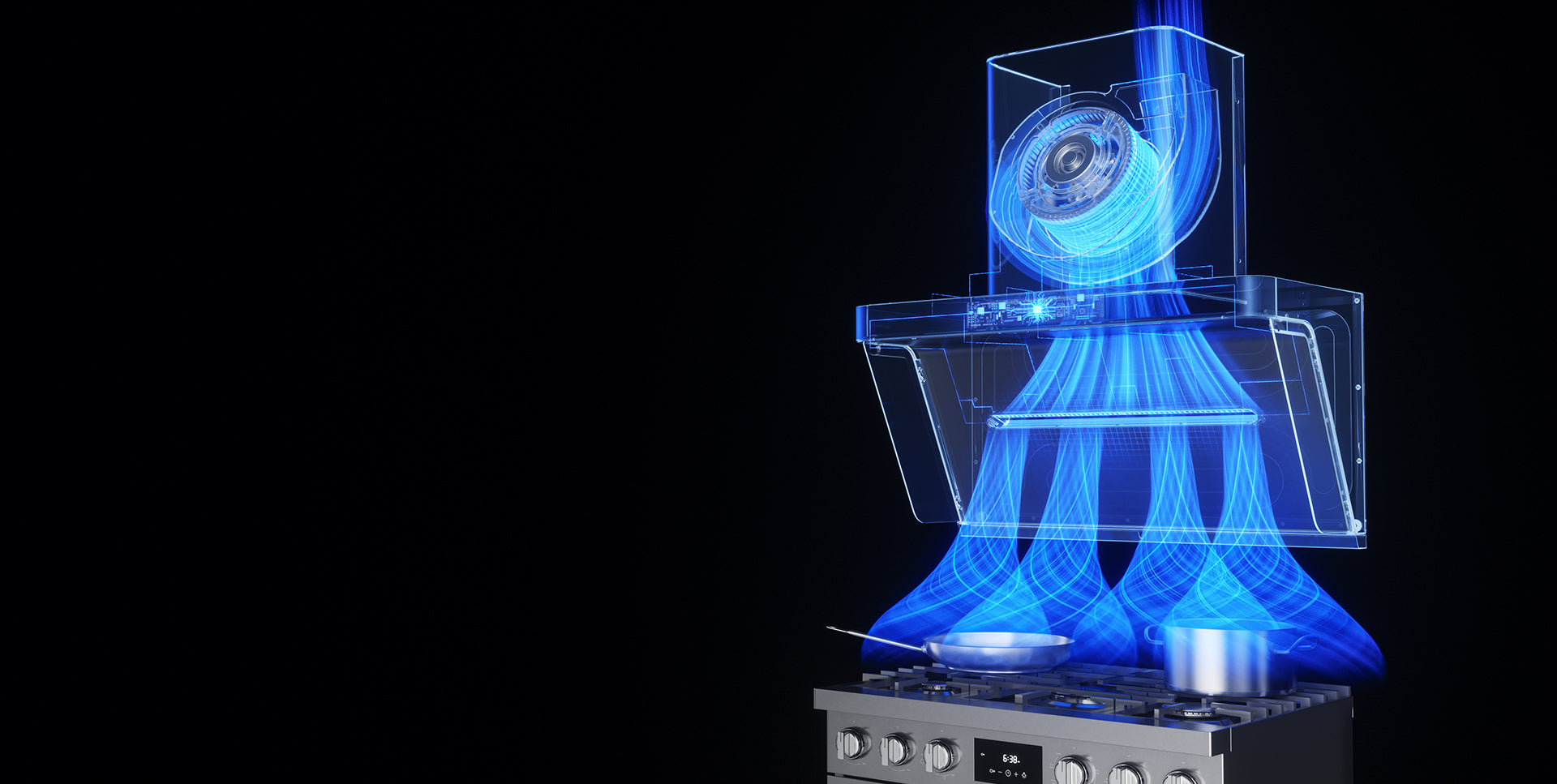 IQV™ (Inclined Quad-Vortex) technology revolutionizes kitchen ventilation with industrial-grade aerodynamic design adapted for home cooking. By generating four inclined vortex streams, it captures smoke and PM2.5 instantly—preventing diffusion and protecting indoor air quality.