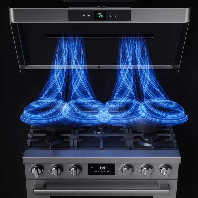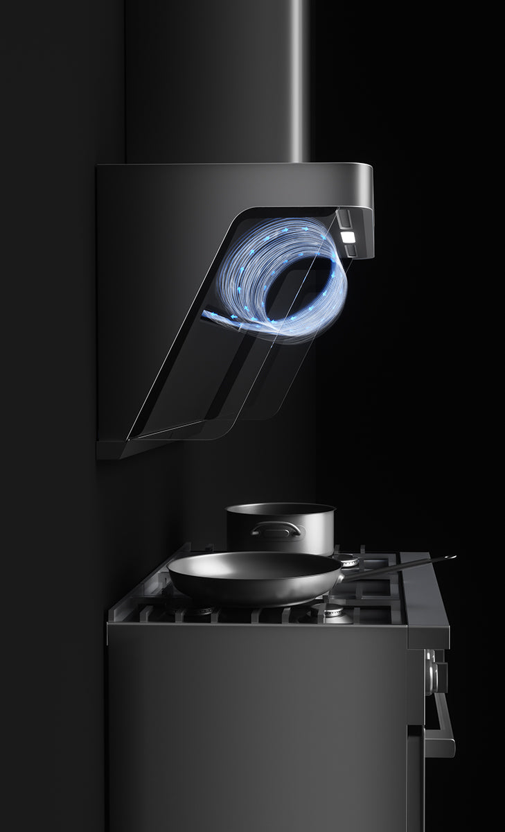 Our brand-exclusive IQV™ system integrates three advanced airflow mechanisms into one unified range hood solution. This multi-flow architecture elevates capture efficiency, suppresses disturbance-driven leakage, and delivers a cleaner kitchen environment for high-end cooking lifestyles.