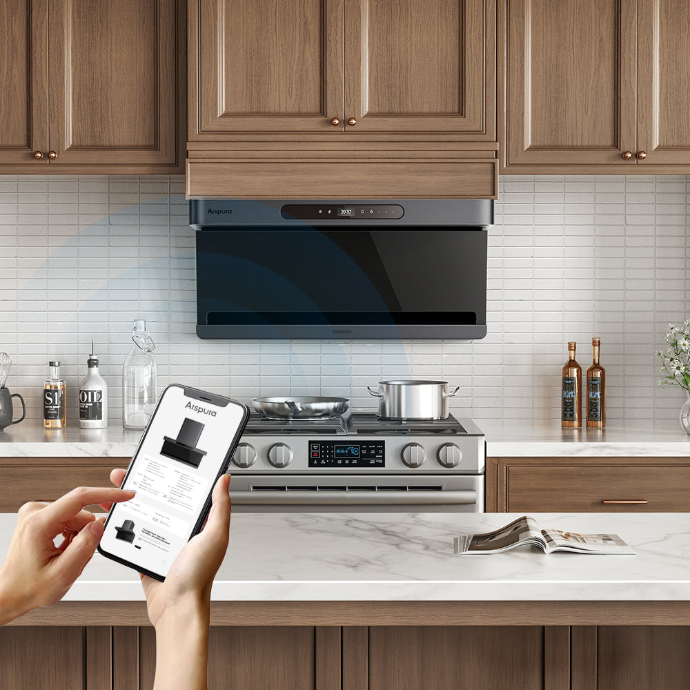 Easily manage your range hood through the Arspura Smart App—adjust fan speed, schedule cleaning, or activate delay shut-off right from your phone.