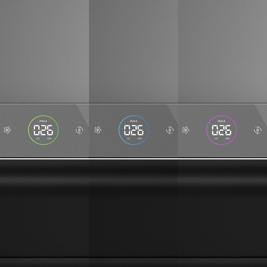 A vibrant light ring visually displays indoor air quality in real time. With three distinct colors, it provides clear, intuitive feedback while adding a stylish accent to your kitchen, turning functional monitoring into a modern design highlight.