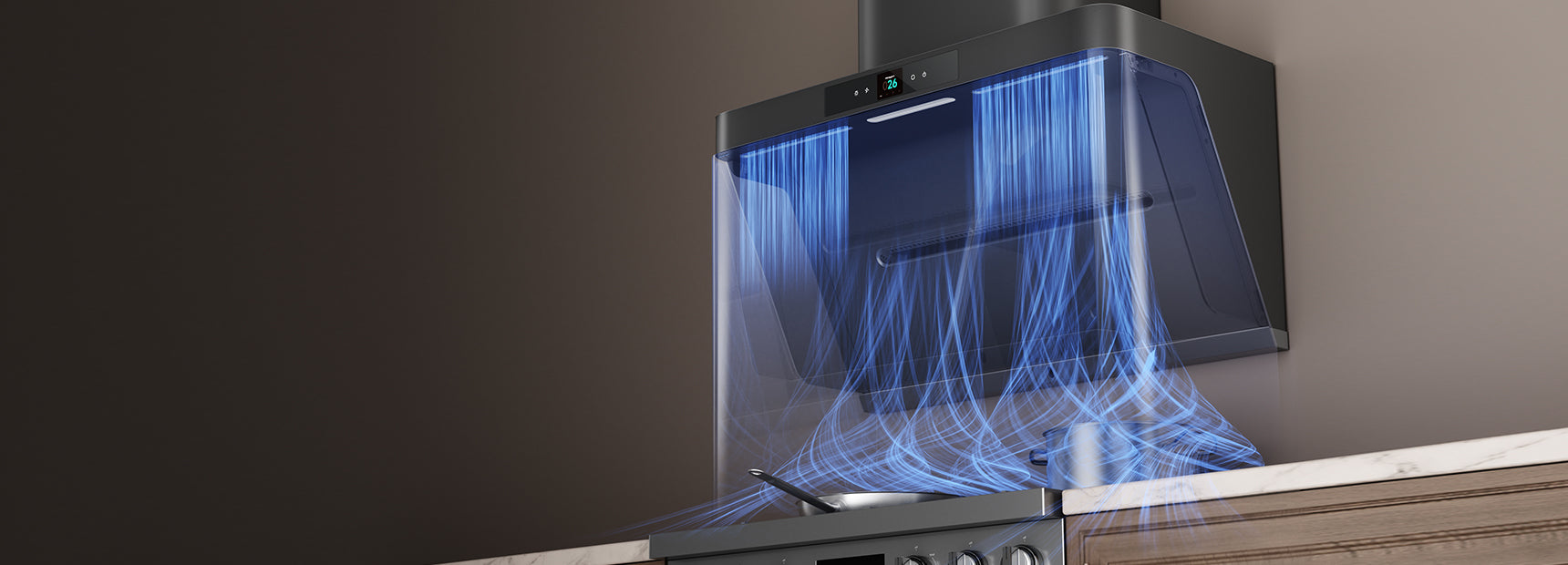 The Arspura P1 elevates this concept—combining a sleek wall-mounted profile with IQV technology for high-speed smoke capture and PM2.5 purification, all without compromising aesthetics or performance.