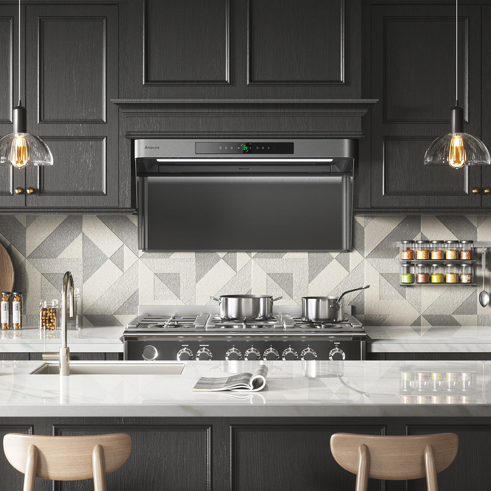 Wall-mounted range hoods are a stylish and efficient ventilation solution, ideal for kitchens with open wall space above the cooktop. They offer powerful smoke and odor removal while serving as a statement piece that enhances your kitchen’s design.
